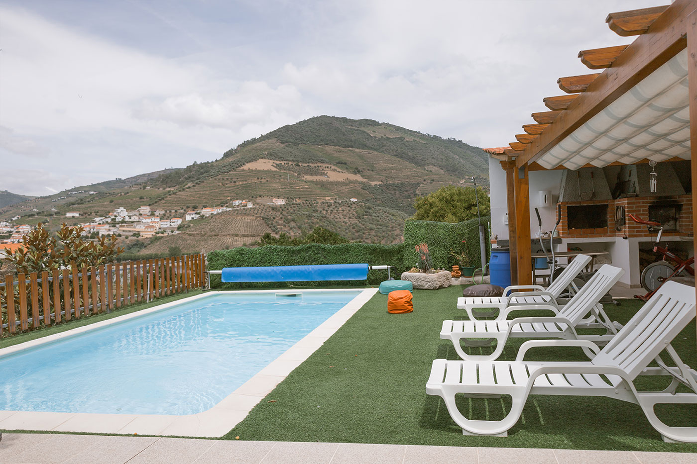Ao explorar a propriedade, encontrará um jardim pitoresco, perfeito para momentos de descontração e convívio. A piscina convida a mergulhos revigorantes, enquanto o barbecue permite experiências gastronómicas únicas em família ou entre amigos. Desfrute de refeições ao ar livre, absorvendo a vista desafogada para o Douro e as majestosas montanhas que o rodeiam.